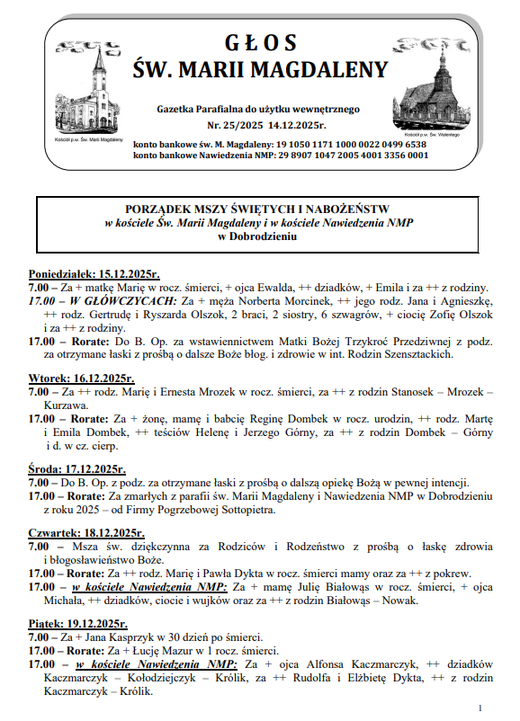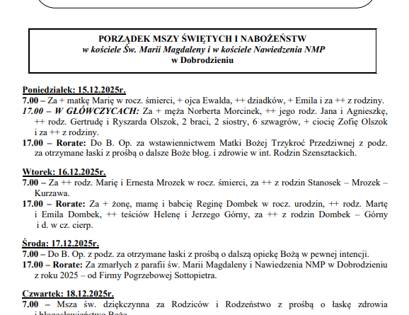 oraz Parafia Nawiedzenia Najświętszej Maryi Panny w Dobrodzieniu