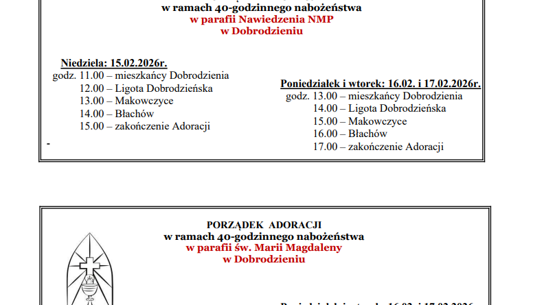 oraz Parafia Nawiedzenia Najświętszej Maryi Panny w Dobrodzieniu