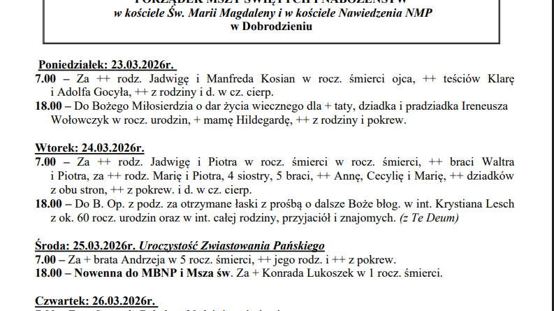 Aktualne ogłoszenia parafialne