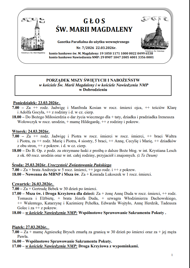 oraz Parafia Nawiedzenia Najświętszej Maryi Panny w Dobrodzieniu